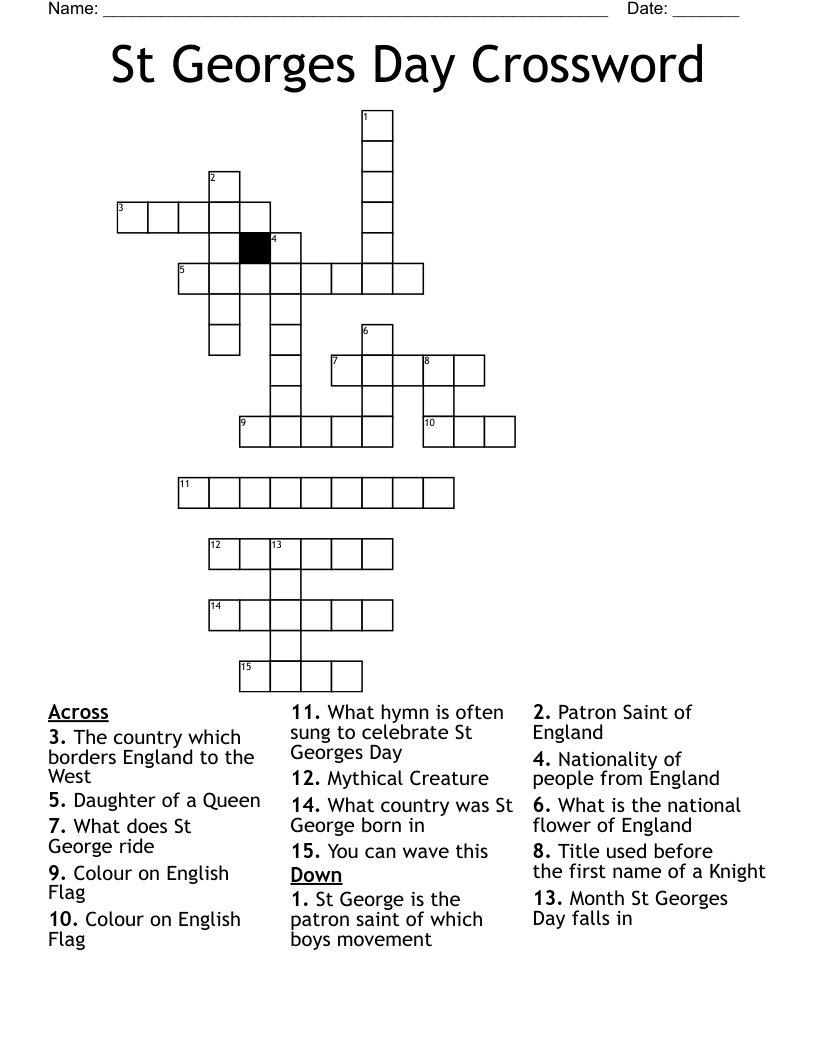 St Georges Day Crossword WordMint
