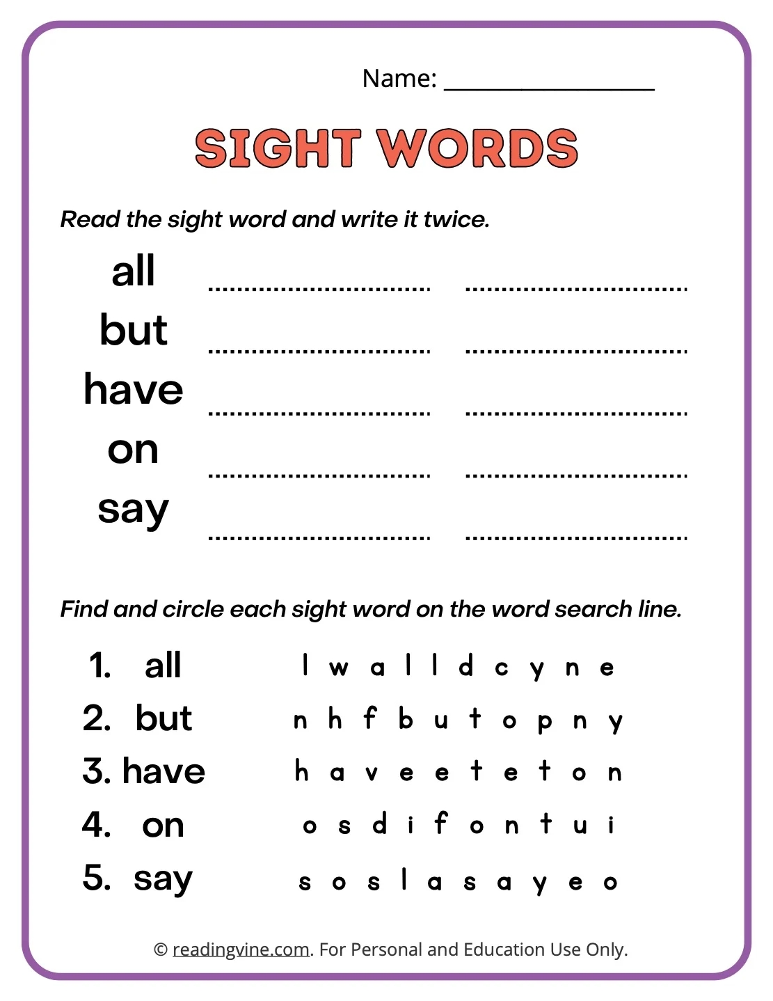 2nd Grade Sight Word Search Puzzle Worksheet Activity Sight Word Practice Made By Teachers