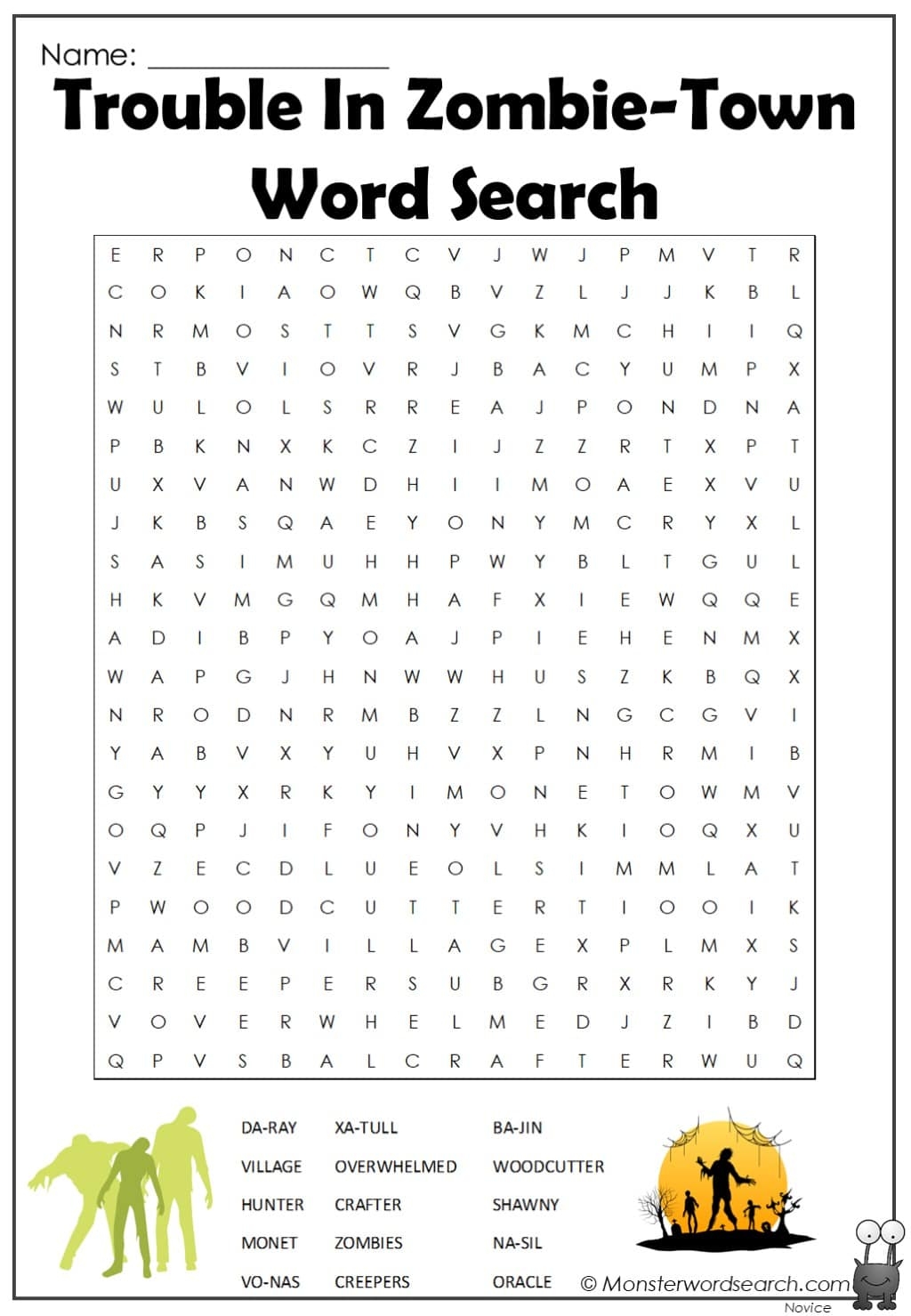 Trouble In Zombie Town Word Search Monster Word Search