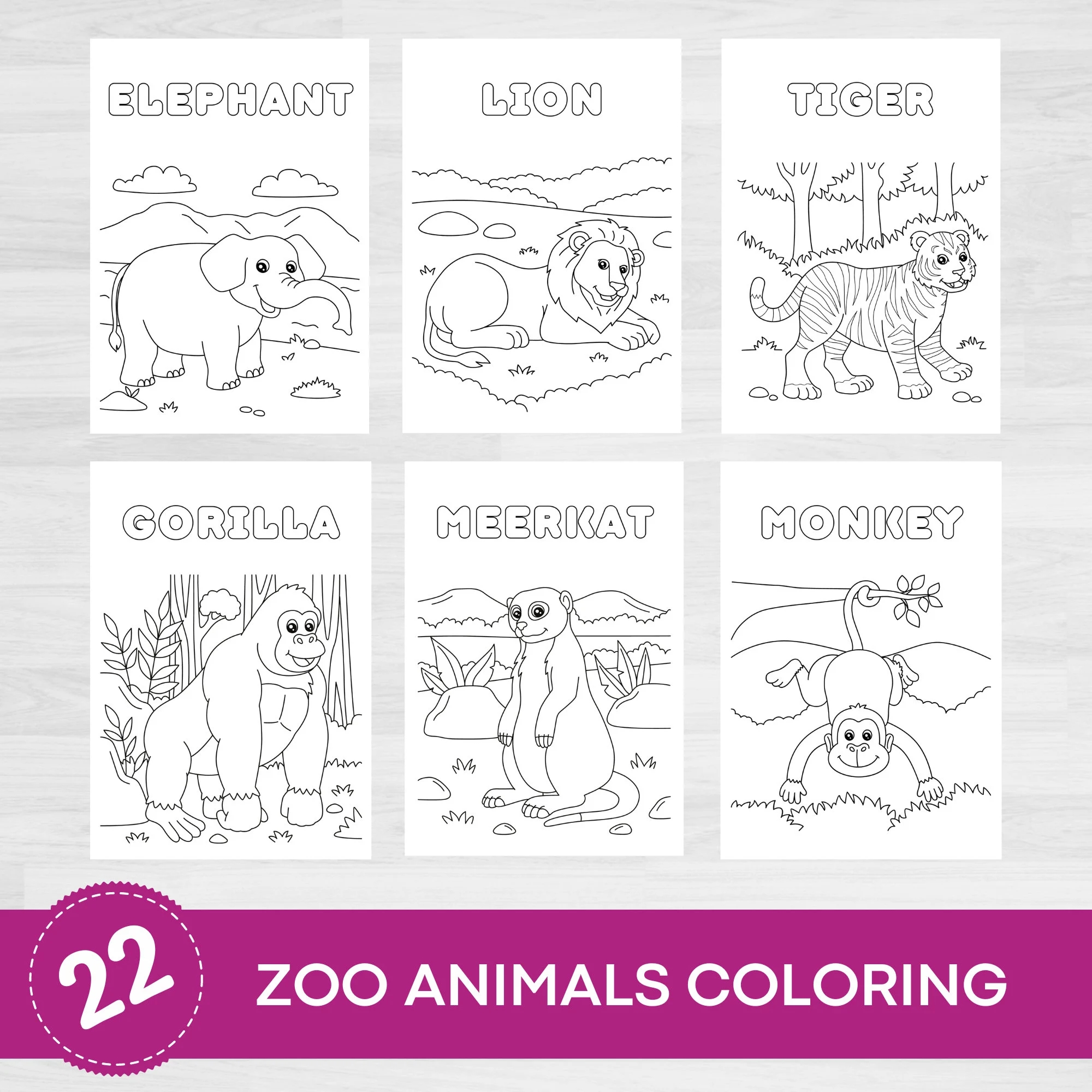 Zoo Animal Coloring Etsy Denmark